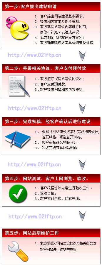 網(wǎng)站建設的一般流程步驟如下圖,以下步驟圖只是一般性的參考,具體的步驟在實際網(wǎng)站建設中可能有所簡略。